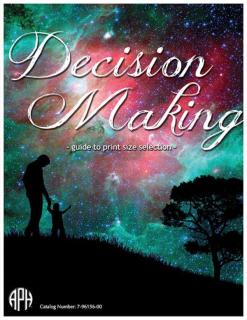 The process presented provides valuable information that can be used as a beginning estimate for appropriate print size. The estimate is reached as part of a learning media assessment with the use of word, sentence, and passage reading charts to arrive at print sizes needed for various tasks, according to an individual’s eye function.